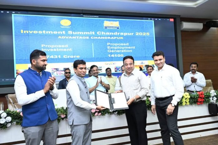 चंद्रपूर जिल्हाधिकारी कार्यालयातील नियोजन भवनात गुंतवणूक शिखर परिषद ‘अ‍ॅडवांटेज चंद्रपूर 2025’ चे करण्यात आले आयोजन, संमेलनाच्या माध्यमातून चंद्रपूरात विक्रमी 17,431 कोटींची होणार गुंतवणूक, निर्माण होणार 14,100 रोजगाराच्या संधी