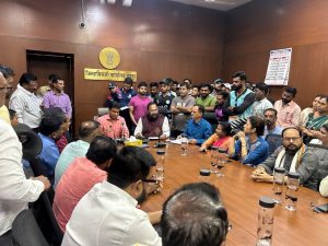 चंद्रपूर जिल्ह्यात माजी पालकमंत्री व भाजपचे दिग्गज नेते आ. सुधीर मुनगंटीवार आणि राज्याचे मुख्यमंत्री देवेंद्र फडणवीस यांचे विश्वासू आमदार चंद्रपूरचे किशोर जोरगेवार यांच्यातील युद्ध थांबण्याचे नाव घेत नाहीये. शहरातील रामबाग मैदान वाचविण्यासाठी सध्या आंदोलने सुरू आहेत. रामबाग मैदान बचाव संघर्ष समितीने आज महापंचायत घेऊन जनआंदोलनाचा निर्धार केला. याच मुद्द्यावर चंद्रपूरच्या जिल्हाधिकारी कार्यालयात भाजपच्या दोन आमदारांनी दोन स्वतंत्र बैठका घेतल्या. यात जिल्हाधिकाऱ्यांची मात्र पळापळ झाली. केवळ एकाच भिंतीचे अंतर ठेवत माजी पालकमंत्री सुधीर मुनगंटीवार यांनी खेळाडू -सामाजिक संस्था- राजकीय कार्यकर्ते यांच्यासह जिल्हाधिकारी कक्षात स्वतंत्र बैठक घेतली. त्यात त्यांनी सामंजस्याने हा प्रश्न सोडविण्याचे आश्वासन दिले. कक्षाच्या बाजूला जिल्हाधिकारी कार्यालयातील सभागृहात स्थानिक भाजप आमदार किशोर जोरगेवार यांनी जंगी बैठक आयोजित करत या प्रश्न पुढाकार घेत असल्याचे स्पष्ट केले. त्यांनी आपल्याला आधी बैठकीसाठी वेळ न दिल्याबद्दल नाराजी ही व्यक्त केली. बैठकीअंती इथले बांधकाम थांबवत असलंयाचा निर्णय देखील दिला. माध्यमांपुढे बोलताना मात्र दोन्ही आमदार यांनी यात श्रेय नव्हे तर लोकोपयोगी कामे व्हावीत यासाठीची भावना महत्त्वाची असल्याचे बळेबळेच सांगितले.