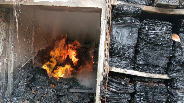 चंद्रपूर:– जनता कॉलेजच्या समोर जेबी आर्ट अँड स्टेशनरी या दुकानाला आज सकाळी भीषण आग लागली. या आगीत संपूर्ण दुकान जळून खाक झाले असून, जवळपास ५० लाख रुपयांचे मोठे आर्थिक नुकसान झाले आहे. आगीचे नेमके कारण अद्याप स्पष्ट झालेले नाही. अग्निशमन दलाने तातडीने घटनास्थळी धाव घेत आग आटोक्यात आणली. मात्र, तोपर्यंत दुकानातील साहित्य, स्टेशनरी व इतर वस्तू पूर्णपणे जळून खाक झाल्या. या घटनेमुळे परिसरात खळबळ उडाली आहे.