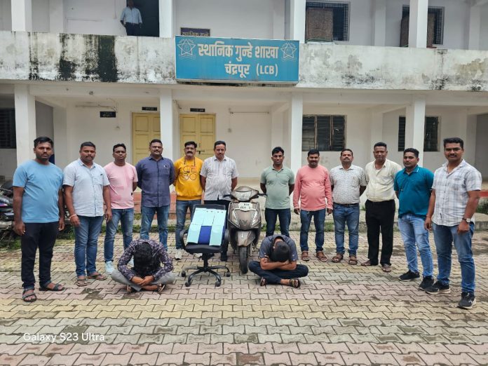 चंद्रपूर शहरातील रामनगर पोलीस ठाणे हद्दीतील निमवाटीका रयतवारी कॉलरी परिसरात स्थानिक गुन्हे शाखेच्या पथकाने गोपनीय माहितीच्या आधारे मेफेड्रोन (एम.डी.) नावाच्या अंमली पदार्थाच्या विक्रीसाठी वाहतूक करणाऱ्या दोन आरोपींना अटक केली आहे. अटक केलेल्या आरोपीचे नाव विशाल रत्नाकर भोयर (वय २१, बगडखिडकी, चंद्रपूर), मो. फैज अब्दुल राशीद कुरेशी (वय २२, नुरी चौक, बगडखिडकी, चंद्रपूर)