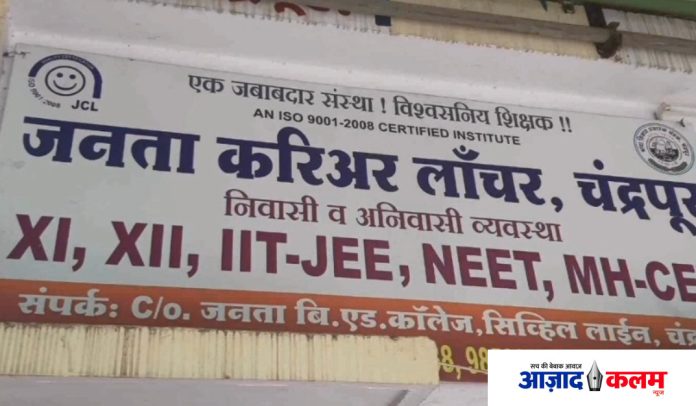 Chandrapur….. जनता करिअर कोचिंगमधील १७ वर्षीय विद्यार्थ्याची आत्महत्या; चार जणांविरुद्ध गुन्हा दाखल