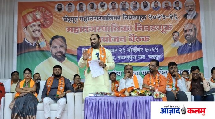 या पार्श्वभूमीवर जैन भवन येथे सर्व इच्छुक उमेदवार आणि पदाधिकाऱ्यांची नियोजन बैठक घेण्यात आली.बैठकीत महानगर निवडणूक प्रमुख आणि आमदार किशोर जोरगेवार यांनी कार्यकर्त्यांना पक्षनिष्ठा आणि एकजूट कायम ठेवण्याचे आवाहन केले. त्यांनी स्पष्ट केले की भाजप हा कार्यकर्त्यांचा पक्ष असून, उमेदवार एक असला तरी विजयाची खरी ताकद कार्यकर्त्यांमध्येच असते. या बैठकीस भाजपचे महानगर अध्यक्ष सुभाष कासनगोट्टूवार, ज्येष्ठ नेते विजय राऊत, महिला आघाडी अध्यक्षा छबु वैरागडे, माजी महापौर राखी कंचार्लवार यांच्यासह मोठ्या संख्येने पदाधिकारी आणि इच्छुक उपस्थित होते.